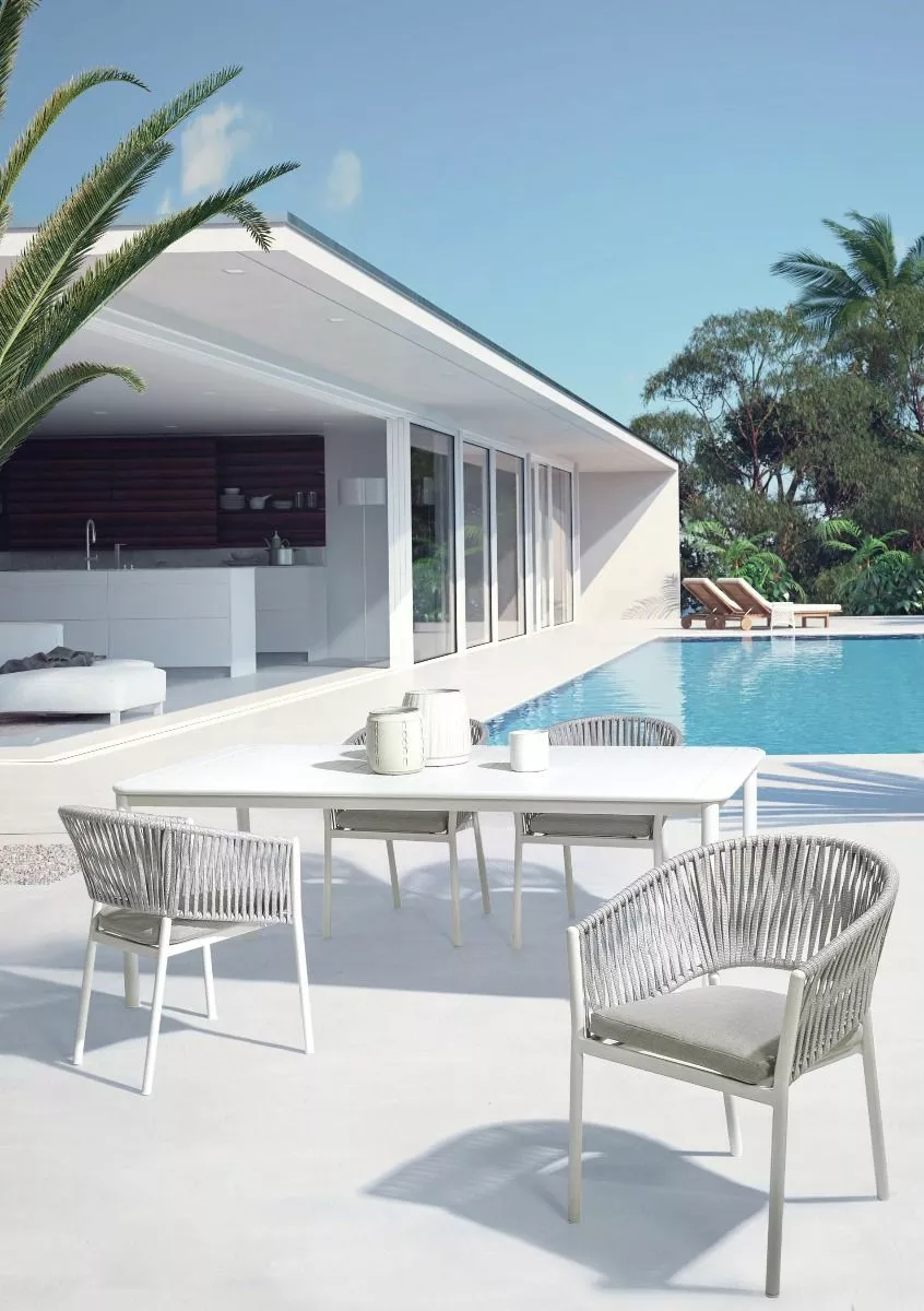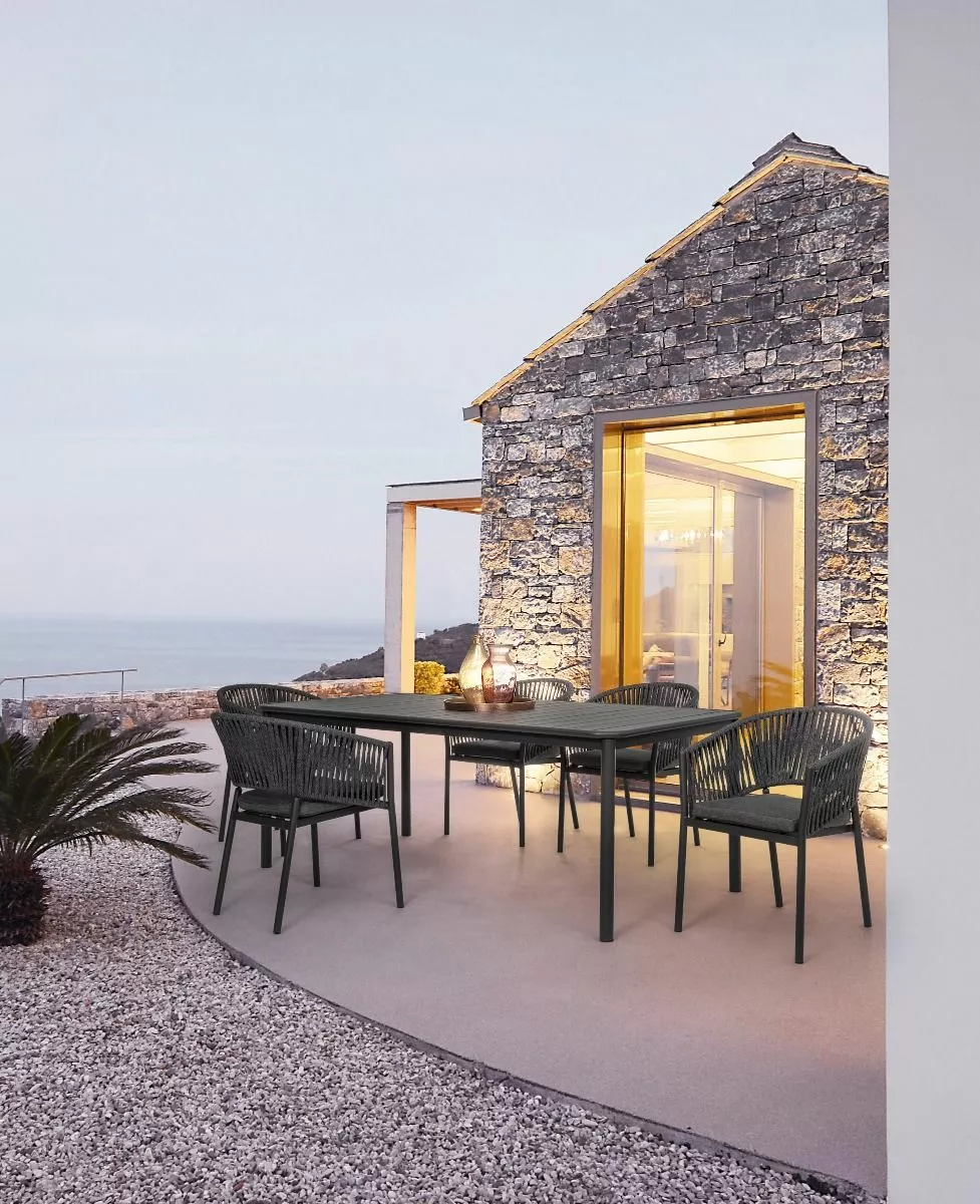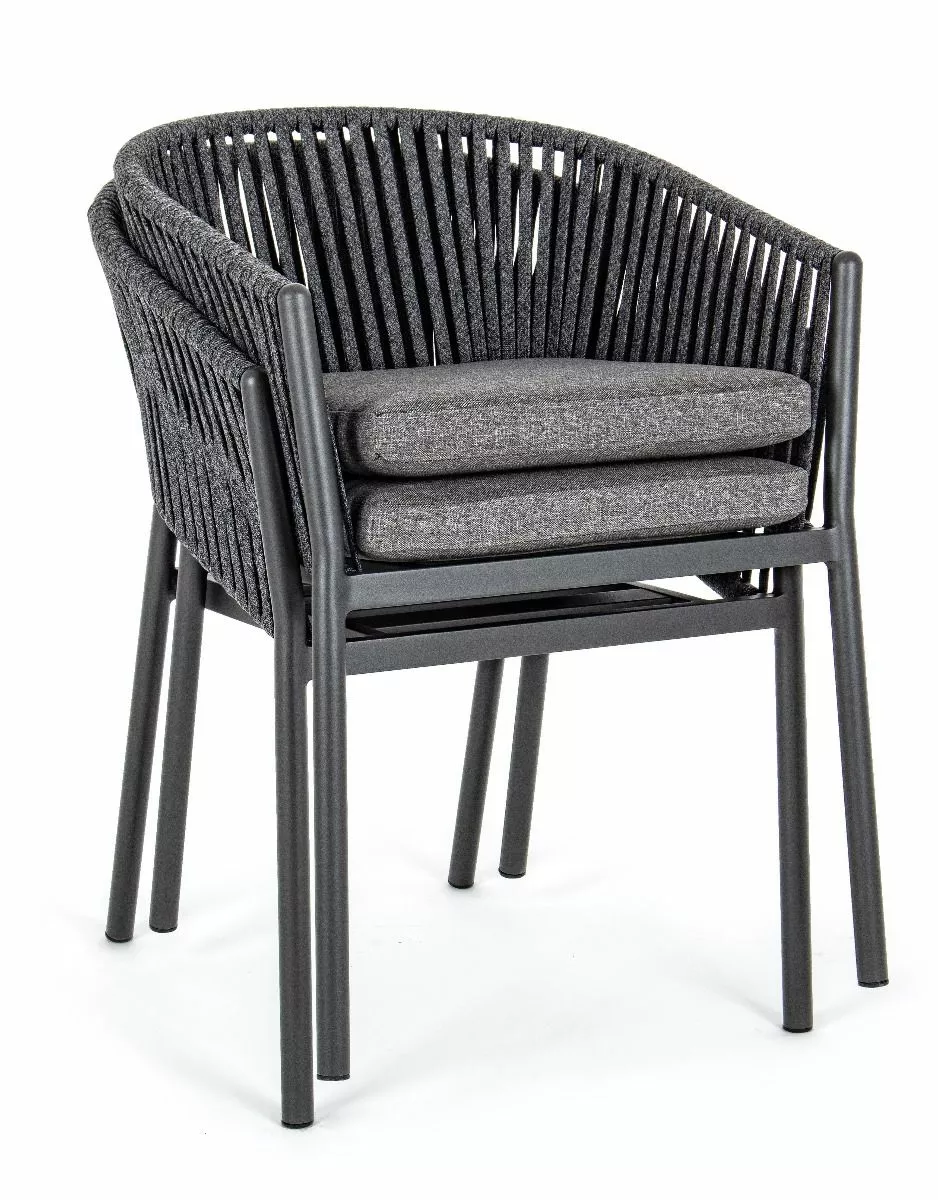 Aluminiumsramme, pulverlakkert (polyester). veving i tetorontau (100% polyester). setepute med avtakbart trekk i olefinstoff (100% polypropylen). kan stables.