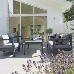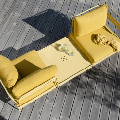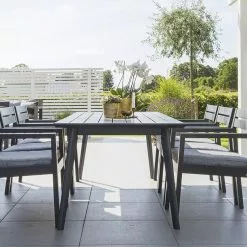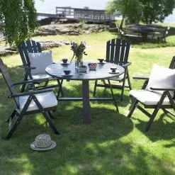 Aluminiumsramme pulverlakkert (polyester). sete, rygg og armlener med polywood (komposittmateriale som ligner på tre) 90% polystyren 10% sbs. galvaniserte stålskruer. skal monteres.