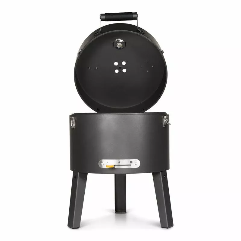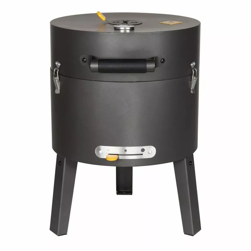 Grillen är lätt att flytta runt tack vare bärhandtagen. De två luftgallren (topp och botten) säkerställer rätt lufttillförsel, så att kolet håller sig vid rätt temperatur. Tack vare den funktionella formen och lätt stängbara locket kan du laga rätter var och när du vill. Perfekt för att grilla på stranden, på campingen eller i parken.