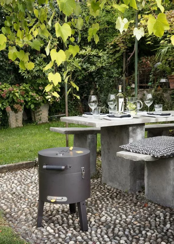 Tonello är kompakt och lätt, men den har allt du önskar dig av en grill: en unik industriell design, ett grillgaller i gjutjärn och ett lock med inbyggd termometer.