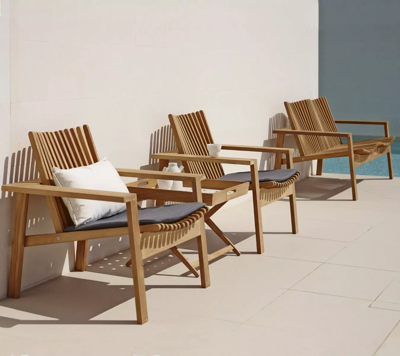 Om du vill skydda det fina teakverket och bevara den ursprungliga unika gyllenbruna teakfärgen rekommenderar vi Cane-line Teak Care-produkter som garanterar underhåll av dina teakmöbler.