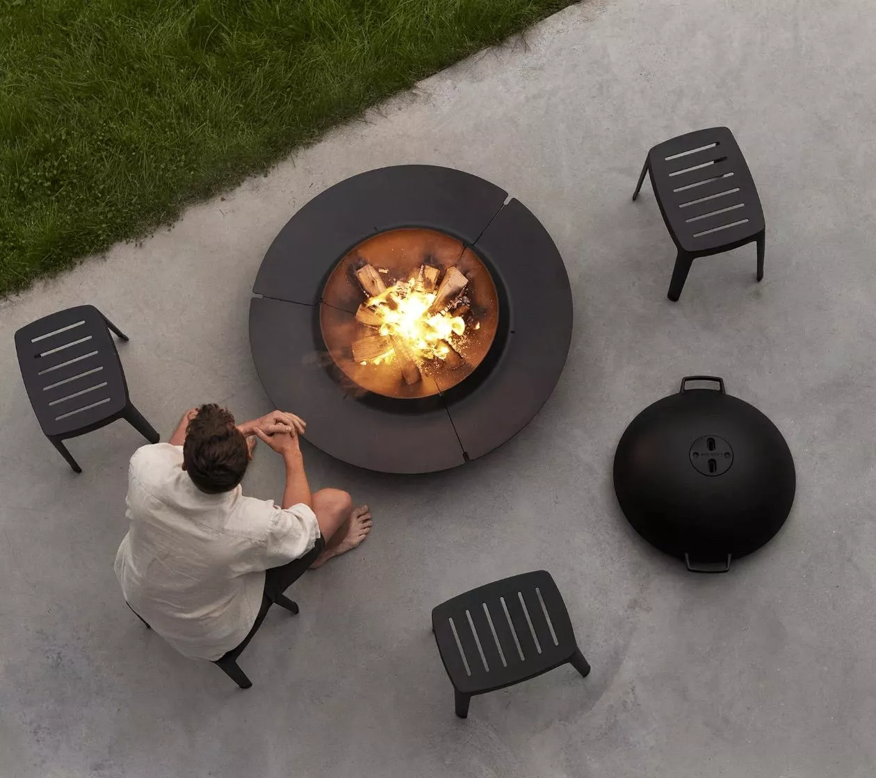 Ember er utstyrt med elegante og praktiske designdetaljer som gir en flott brukeropplevelse. For eksempel sørger formen og dreneringsdetaljene for at regnvann raskt renner av bålfatet, og sikrer at det er enkelt å vedlikeholde og holde rent.