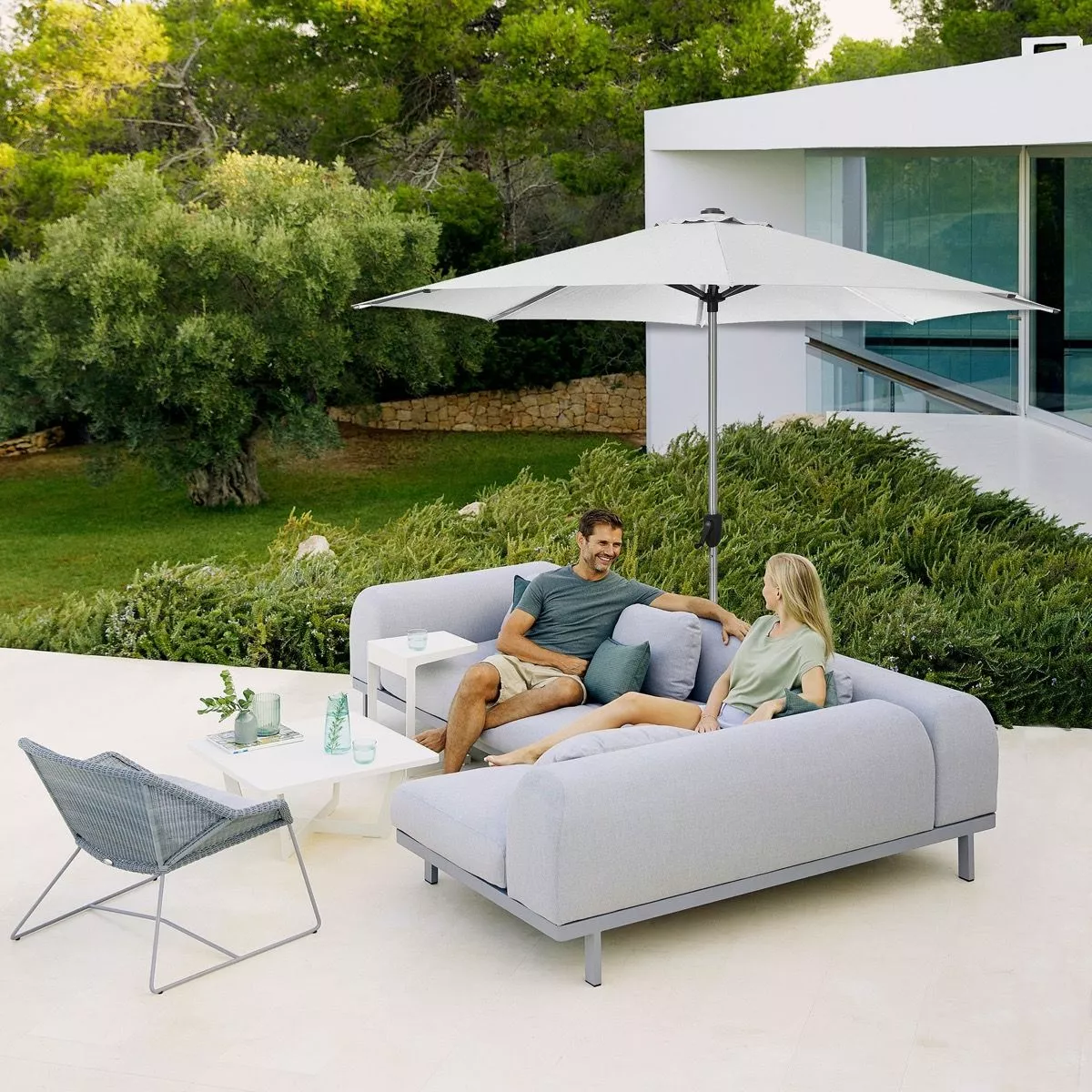 Sunshade er en serie paraplyer designet av Cane-line designteamet. Med solskjerm for hånden kan du nyte uterommet ditt selv når solen er lysest. Solskjerm gir mange koselige timer utendørs, hvor du kan slappe av i skyggen med de du bryr deg om. Sunshade kan brukes til både elegante uteserveringssett, eller for å fullføre den koselige utendørs oasen av salongmøbler. Sunshade parasollen består av en elegant og minimalistisk kjerne i aluminium, med et vippesystem som gjør det enkelt å håndtere. Solskjerm parasoll m / tilt har en diameter på 300 cm, og kommer i fargen antrasitt med en sølvfarget anodisert stang. Sammen gir den en holdbar og minimalistisk parasoll med lang levetid. Sunshade gir en stemning av eksklusivitet og sommeratmosfære, og med et matchende hagemøbler kan Sunshade løfte terrassen din til et nytt nivå.