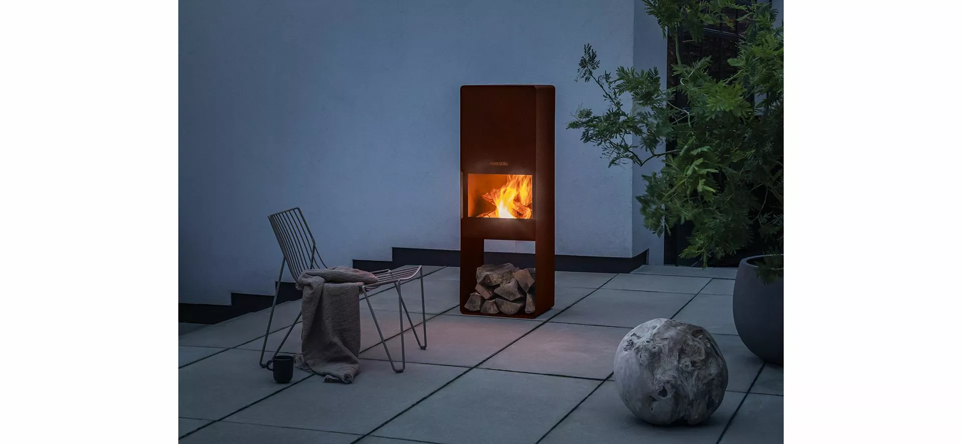 Dette sikrer at produktet ikke gjennomtæres. Hagepeisen får naturlig en gylden rødbrun farge, og over tid blir denne rustfargen bare vakrere og vakrere. Den endres etter hvert som den blir utsatt for vind, vær og bruk, og får derfor også mer patina. Dette betyr også at variasjoner i farge- og overflatemønstre vil oppstå, og at dette kontinuerlig vil utvikle seg, spesielt med de høye temperatureffektene under bruk.