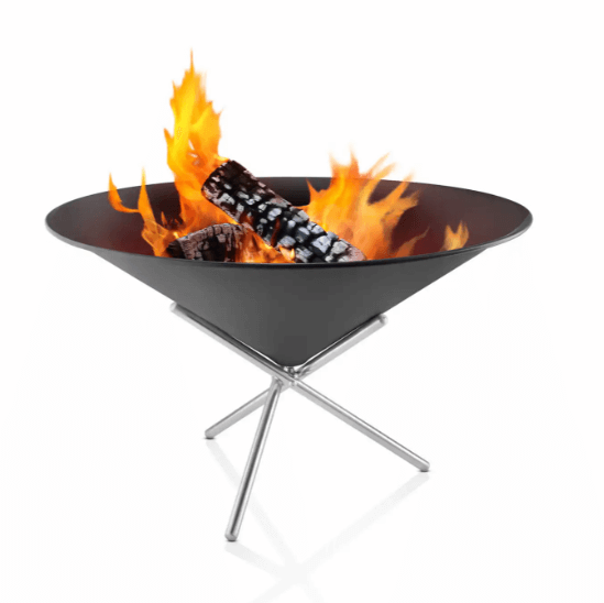 I motsetning til de flatere bålfatene har ildstedet en fasong som gjør at veden faller ned i bunnen og ilden holdes bedre i gang