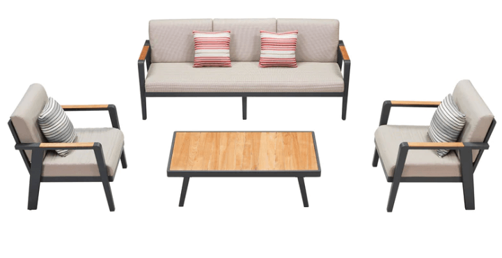 Dette møbelet har stoff/putetrekk som er resistent mot fukt, vann, og flekker/smuss.