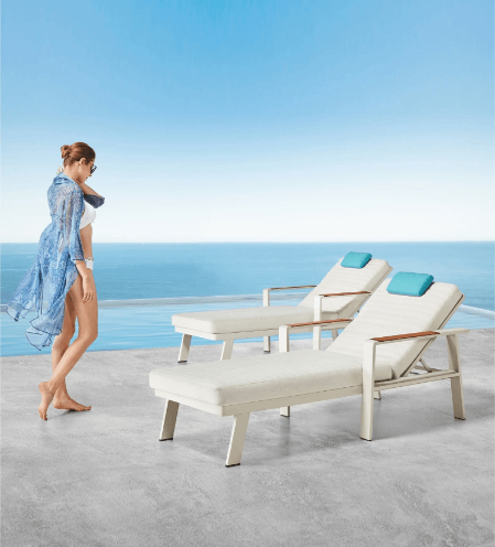 Nofi Solseng Gruppe Taupe er en stilfull og moderne utemøbelserie fra Higold som vil gi et imponerende inntrykk på enhver uteplass. Serien er spesielt konstruert for å tåle det tøffe nordiske klimaet med kraftig konstruksjon og slitesterke materialer. Solsengene er svært komfortable med en ekstra tykk liggepute og justerbar rygg. Konstruksjonen har en kraftig aluminiumsramme av høy kvalitet med Akzonobel-pulverlakk og FSC-sertifisert teak, som gir et smakfullt og trendy design. Nofi-serien har puter i Olefin-stoff som er svært værbestandige og kan vaskes i maskin på 30 grader. Det er angitt anvisninger på innsiden av putetrekket. De høykvalitets skummadrassene gir svært god sittekomfort og lang levetid. Møblene er også UV-bestandige, vannavstøtende og fargeekte. Bildet viser et Zig Zag bord i aluminium som passer godt som sidebord til sengene.