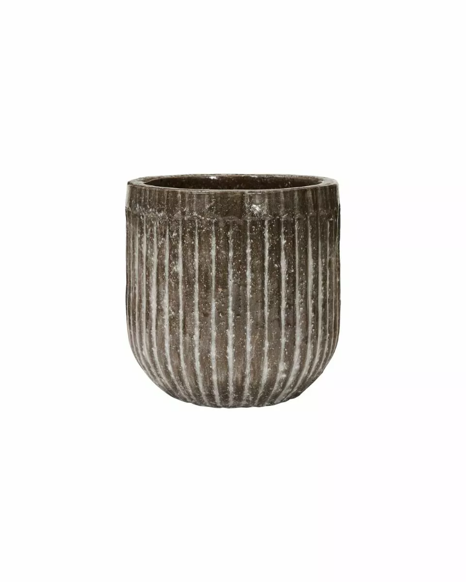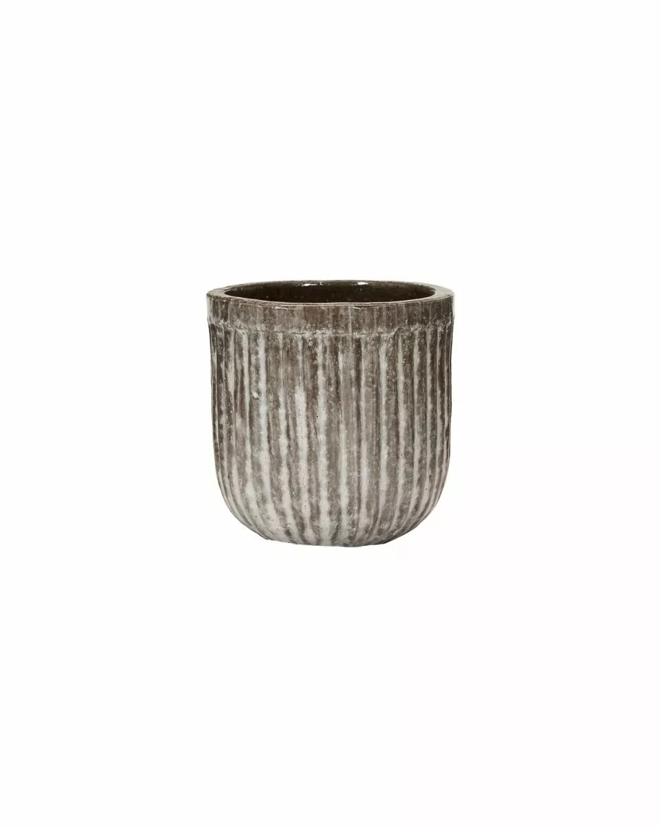Dette settet med to utendørskrukker fra House Doctor gir hagen en umiddelbar oppdatering. De håndlagde leirekrukkene kommer i to størrelser og har fått en glatt glasur i forskjellige brune nyanser med hvite detaljer og vertikale riller. Et tidløst, men samtidig moderne design i et naturlig fargevalg som får dem til å smelte sømløst inn. Bruk Pharao med dine favorittblomster, planter eller kanskje til og med et lite tre. Krukken tåler temperaturer ned til -20C og kommer med dreneringshull i bunnen. På grunn av egenskapene til den reaktive glasuren kan fargen og finishen på denne krukken variere. Det er en naturlig egenskap og en del av håndverket bak det håndlagde designet.