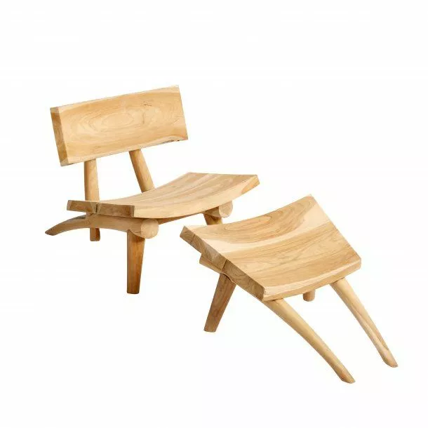 Dakota teakstol och fotpallssats från Muubs, som kan användas både ute och inne. Genom att montera Dakota-fåtöljen med fotpallen i teak skapas ett nästan skulpturellt element i hemmet. Fåtöljssatsen i teak inbjuder till mysiga och avkopplande stunder. Skapa extra komfort genom att dekorera loungestolen i teak med ett lammskinn eller kanske en kudde.