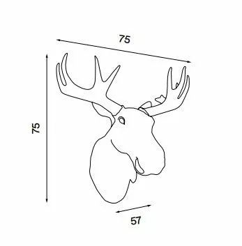 Mål: H: 75 cm B: 75 cm (gevir) B: 57 cm (hals)