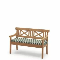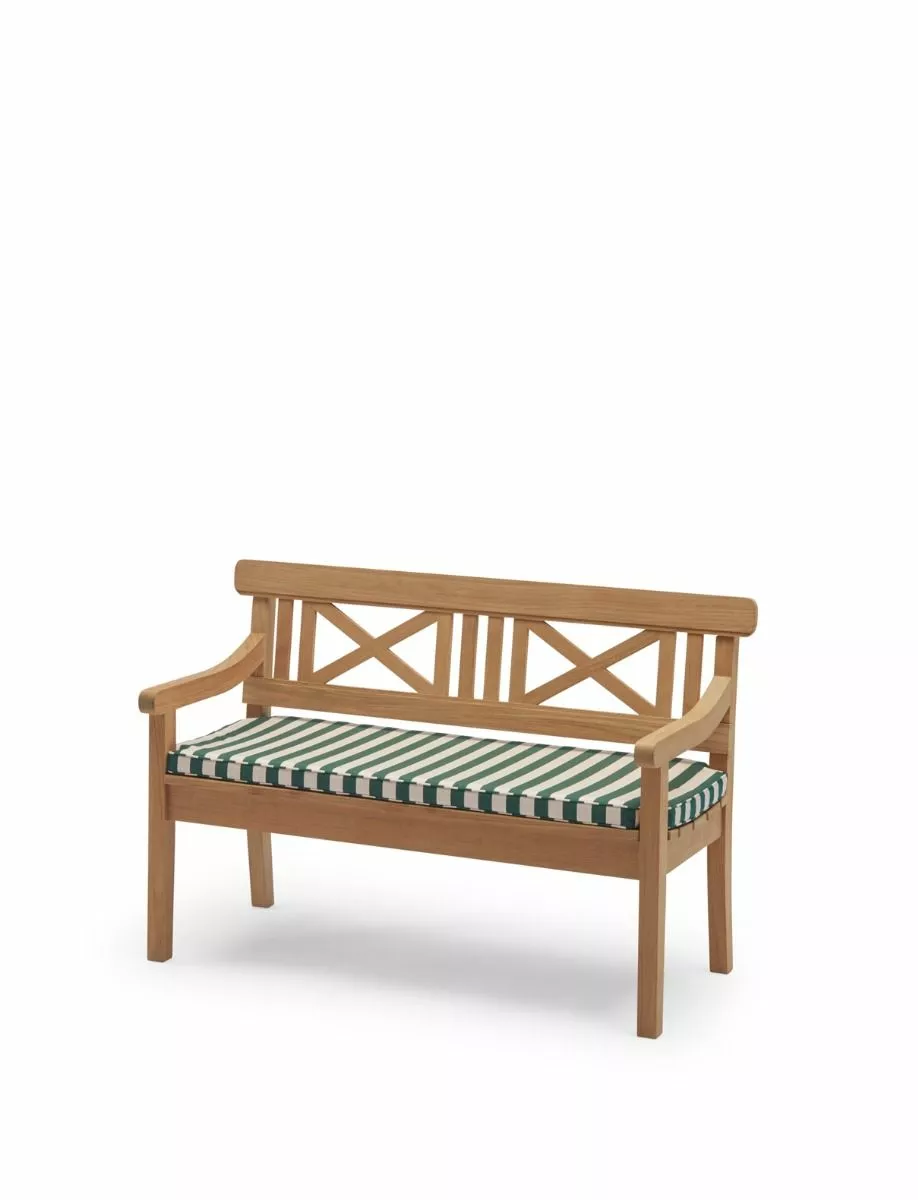 For å feire Drachmann-benkens 40-årsjubileum har vi oppgradert putene med fargerike striper for å gi den klassiske benken et nytt uttrykk. Drachmann-puter er skreddersydde for å passe til kolleksjonen og svært værbestandige. Møbelstoffene er Oeko-Tex-sertifisert, farge- og lysbestandig, vann- og smussavvisende og til og med muggbestandig. Puten tørker eksepsjonelt raskt, selv etter et kraftig regnskyll, da skummet har en åpencellet struktur som lar vann og luft passere. Skummet gir en fast og behagelig tekstur som forblir den samme år etter år.