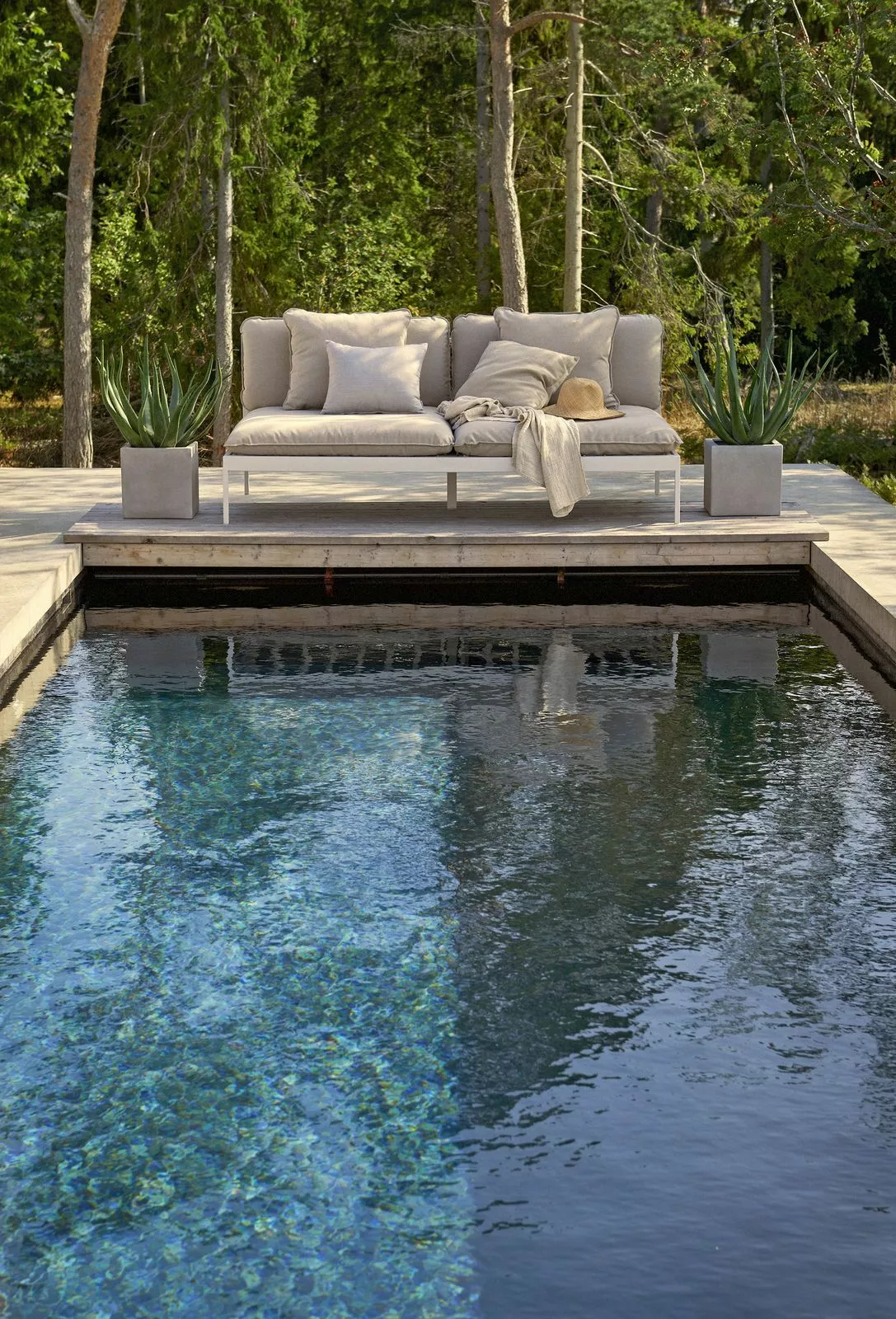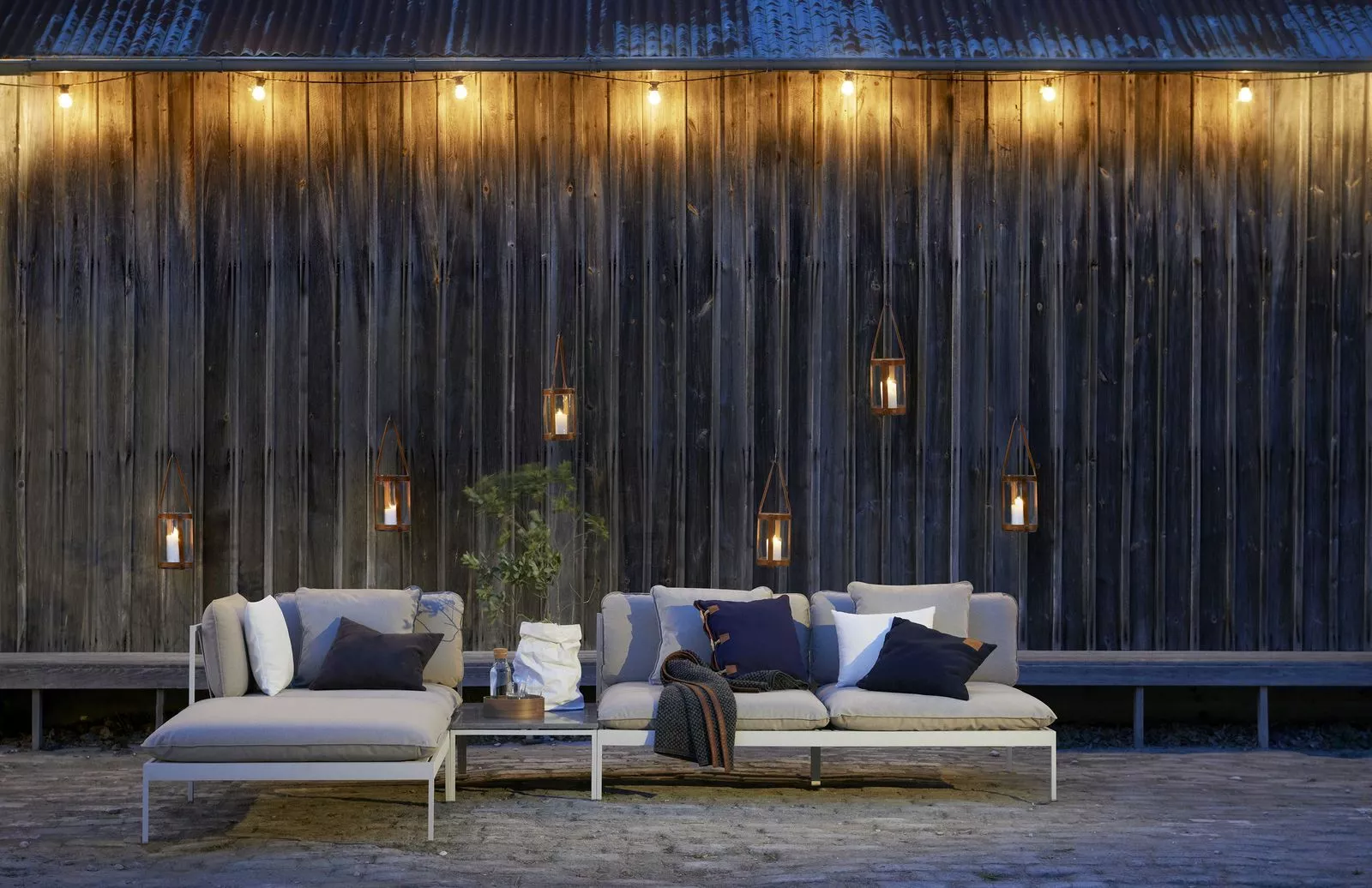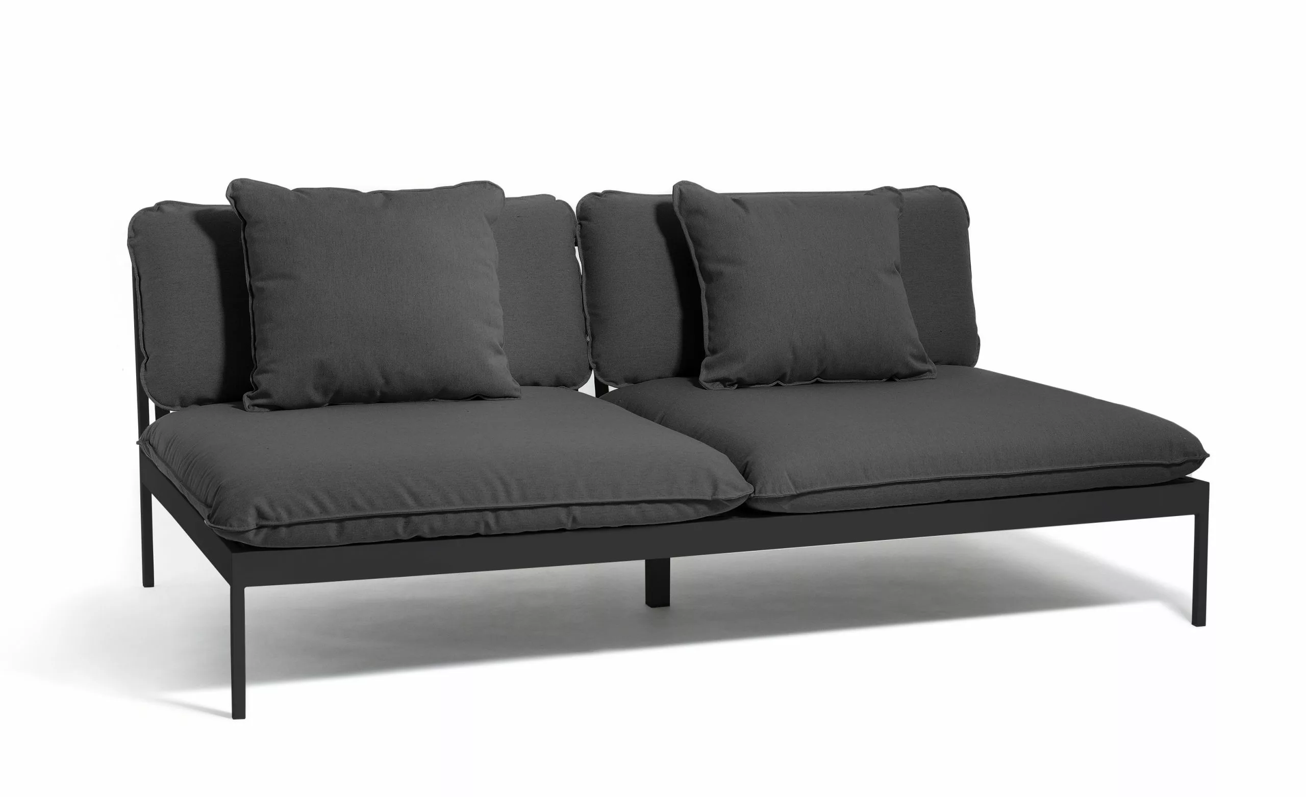 Ett smart modulärt soffsystem som kan användas året runt utomhus. Mycket mångsidig, mycket slitstark. Ramarna är gjorda av aluminium, kuddarna är gjorda av Sunbrella utomhustyger och fyllda med Quickdry-skum.